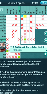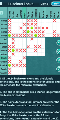 5 STARS from Claudiama. Best Logic Puzzle App. This is the best logic grid puzzle app in the App Store for the variety and complexity of their puzzles.