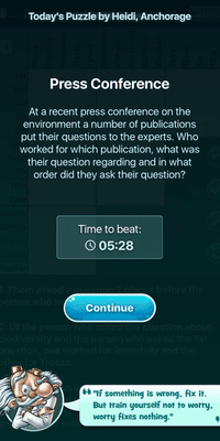 Logic Puzzle fans, meet your nemesis! Created by a team of puzzlers who have been completing these grid-based logic problems for decades, the Logic Professor challenges you to work your way through level after level of his brain-teasers. Can you beat his time for each logic puzzle and win bragging rights, or will you be the recipient of another of his intellectual wisecracks?