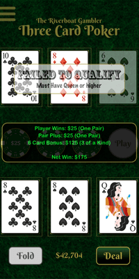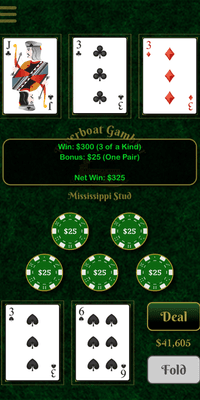Feature | Riverboat Gambler | Mississippi Stud Poker Casino | Triple Card Poker Casino |