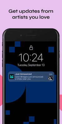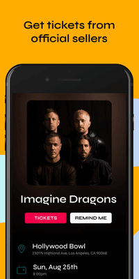 Follow your favorite artists or sync services like Spotify and Apple Music to stay connected and receive alerts when they announce shows near you, and even request a tour stop in your town. Set reminders, get tickets from official sellers, and read reviews before you go.