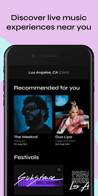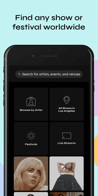 Find any concert, festival, or venue worldwide, discover new artists and events based on your taste, and do it all over again.