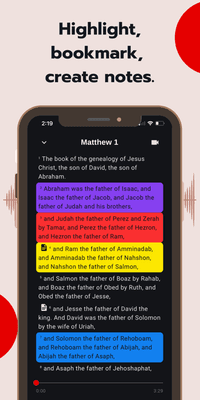 - Bookmark, highlight, and add notes for Scripture memorization and inspiration.
