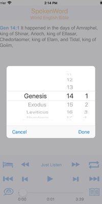 - Touch the book icon to select the Book/Chapter/Verse to start at