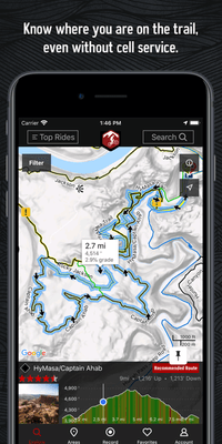 • Downloaded trails work offline for when you’re off the grid. (No cell reception required!)